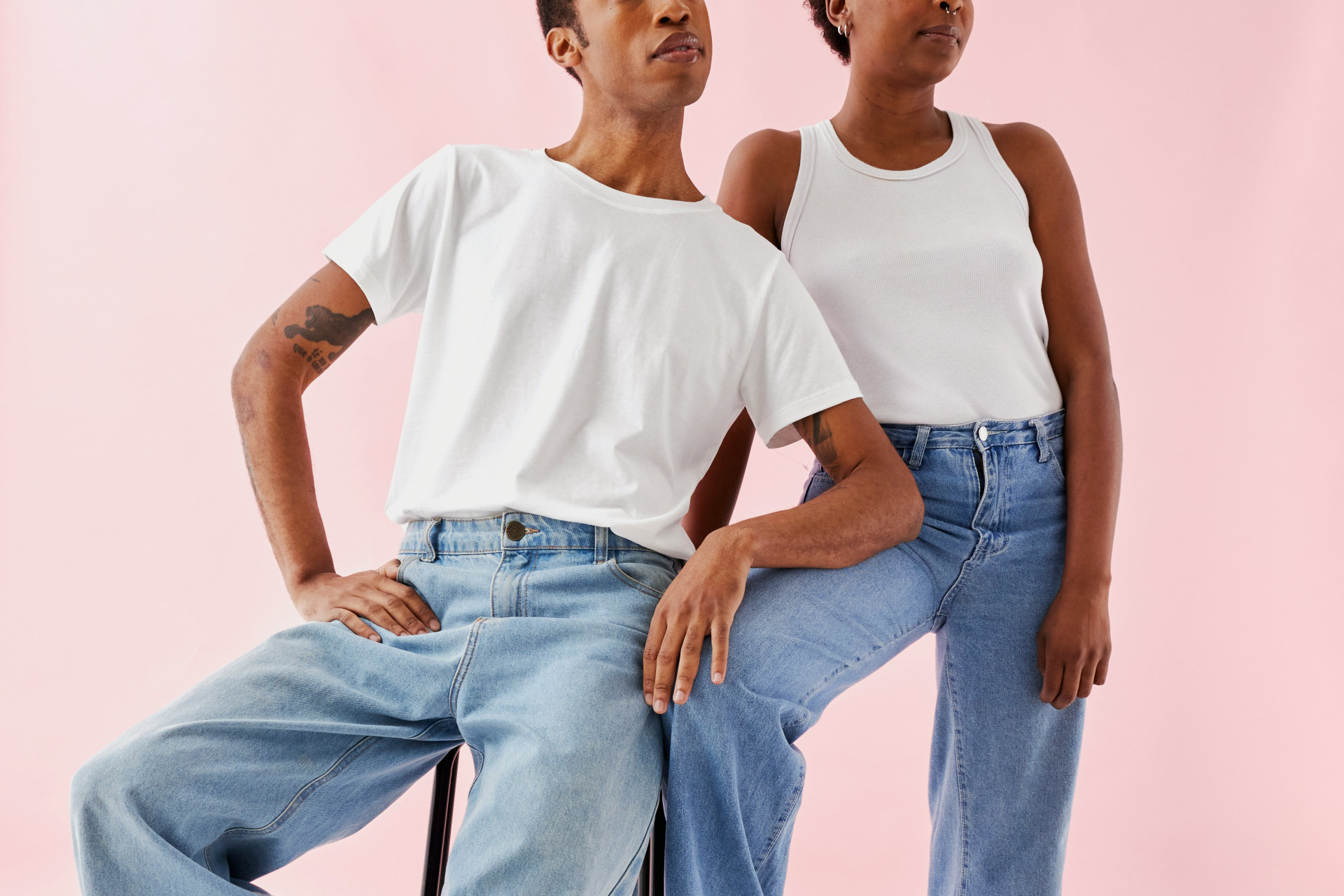 Vil du have et mere poleret look, så gå efter bomuldssatin eller gabardine, som har en glattere overflade og et mere flydende fald.